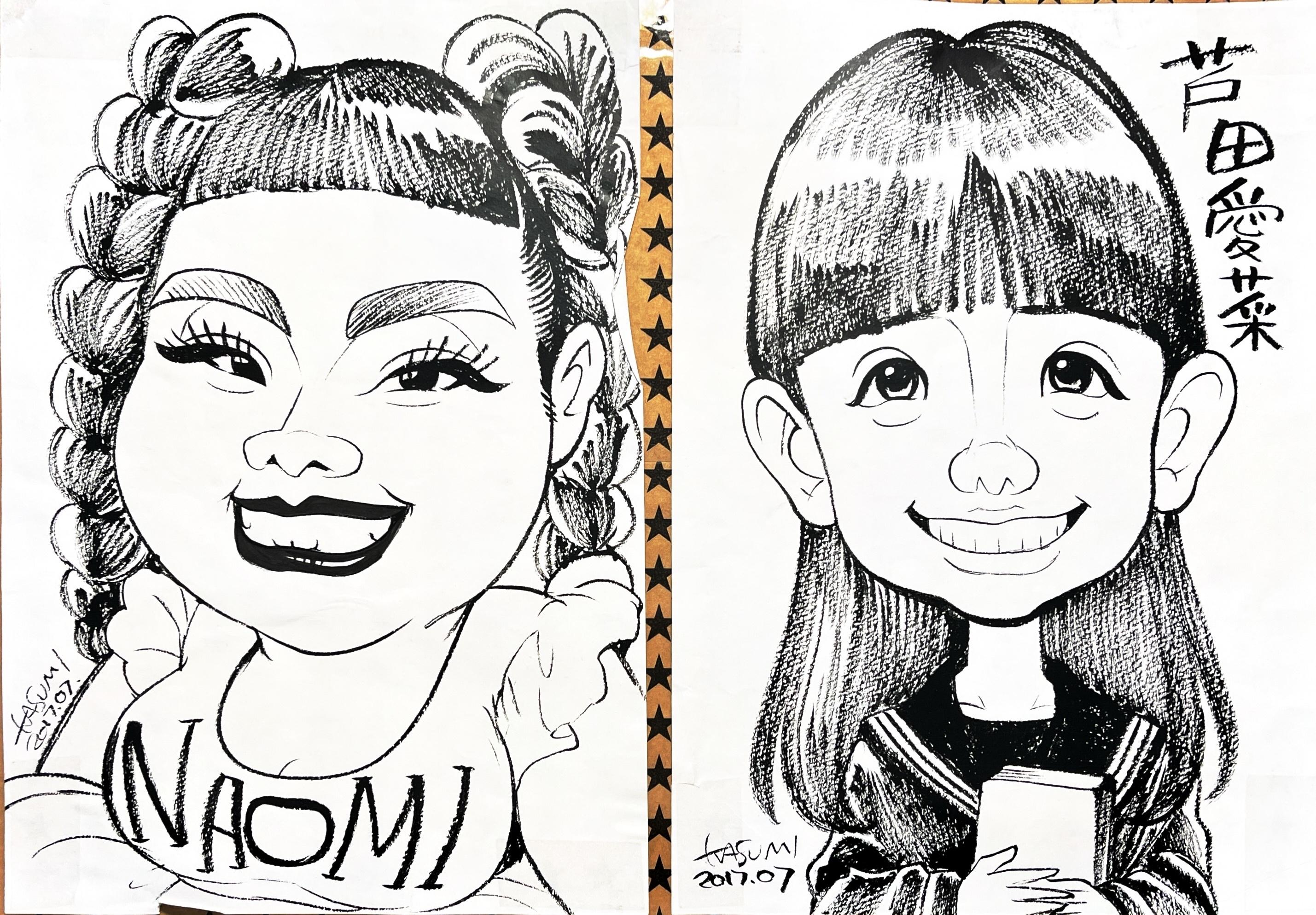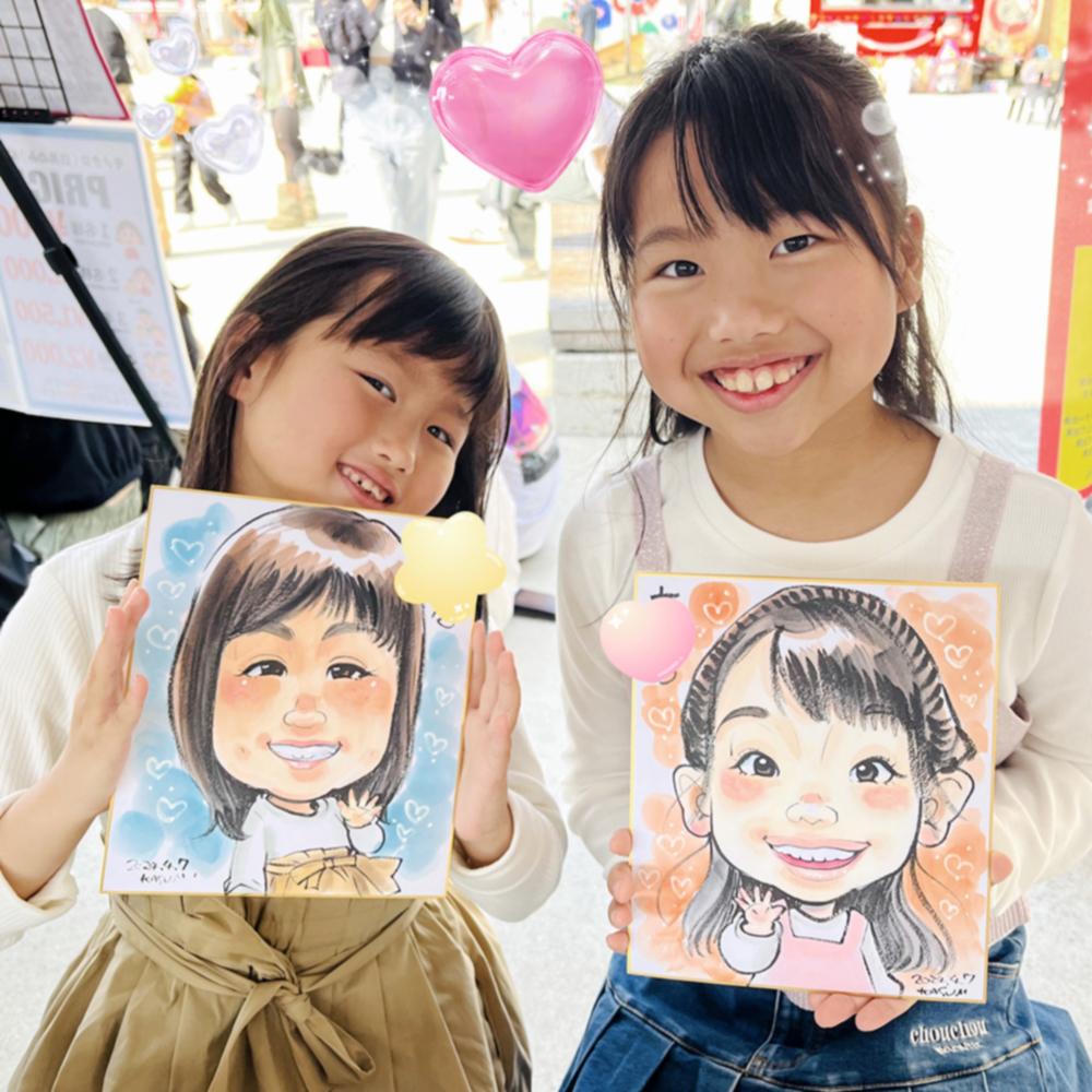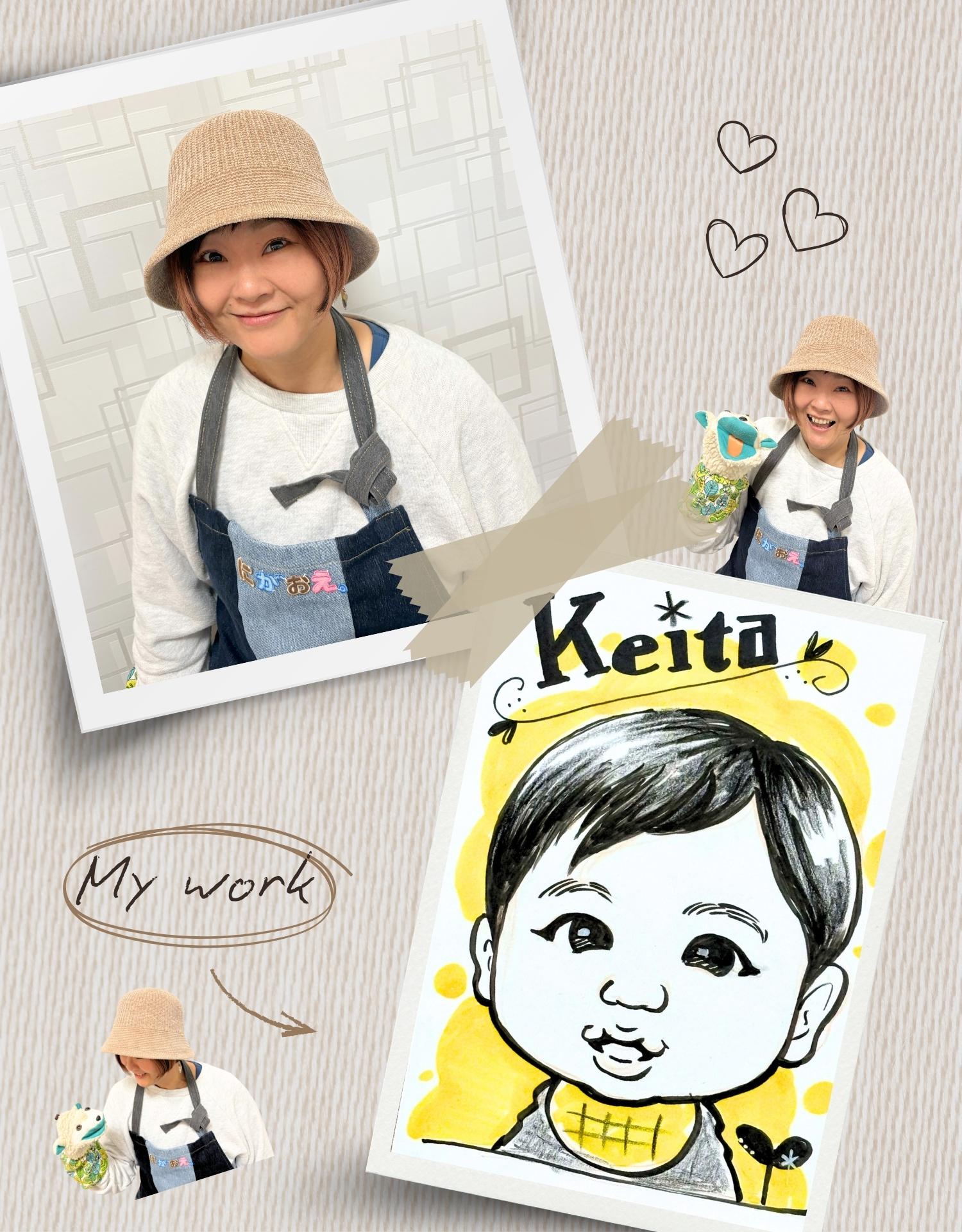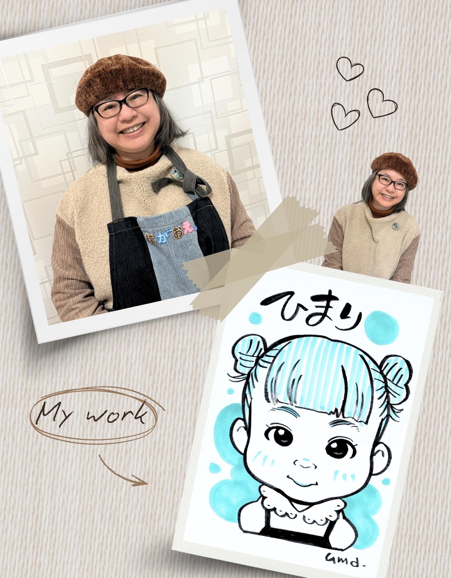 可愛くキャラクター風の似顔絵を描くのが得意です。モデルを主人公にする魔法の似顔絵。1枚の似顔絵で、笑顔を倍増させます。似顔絵のイベントパフォーマンスや、受注似顔絵。ペットちゃん似顔絵から、お祝い似顔絵まで幅広く承ります。