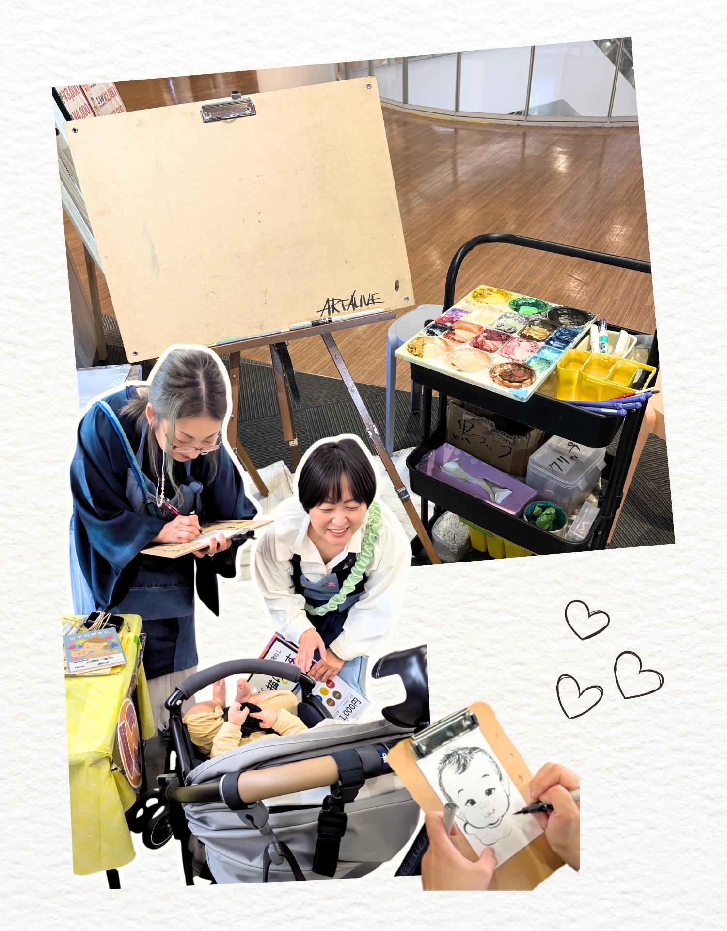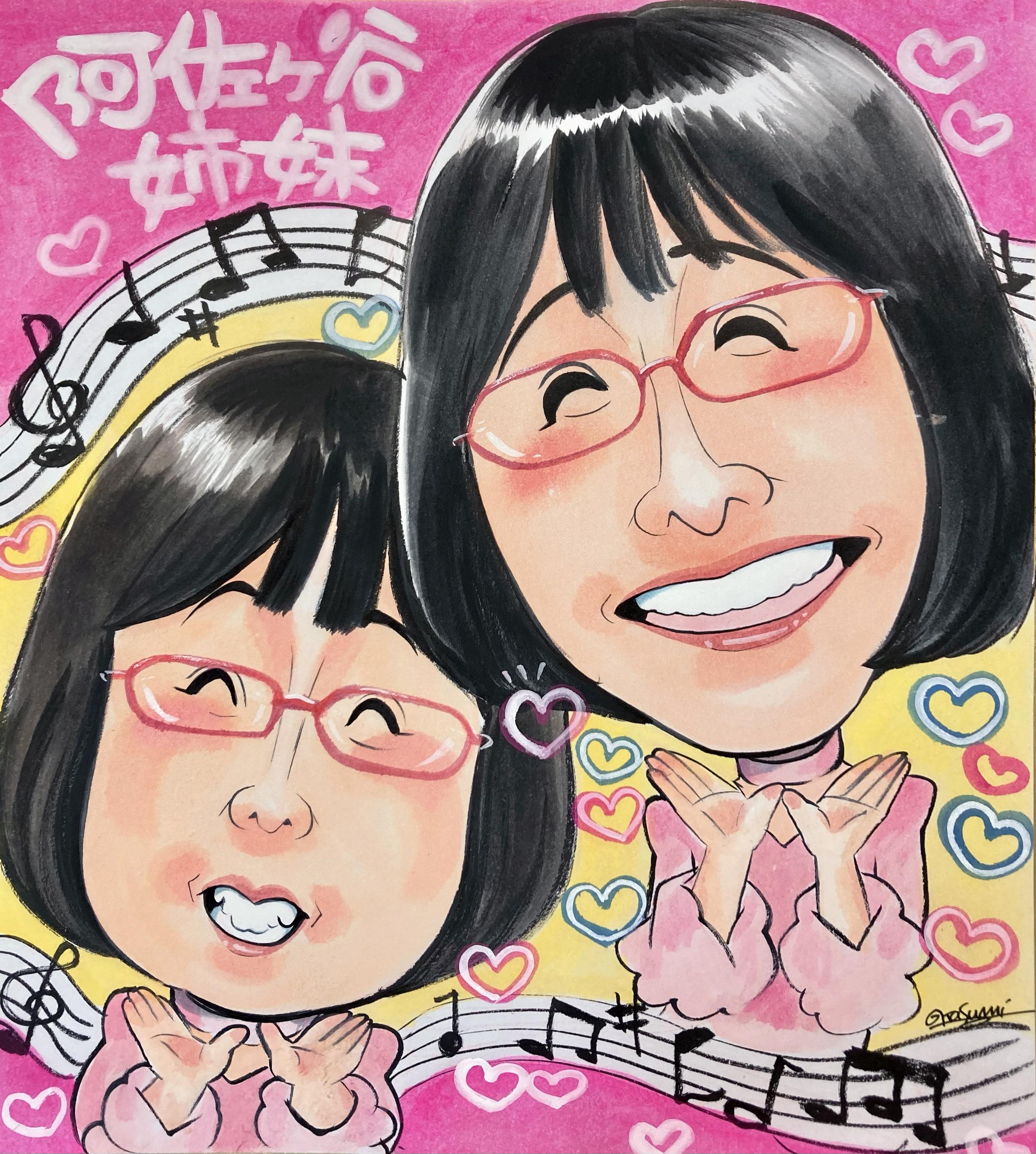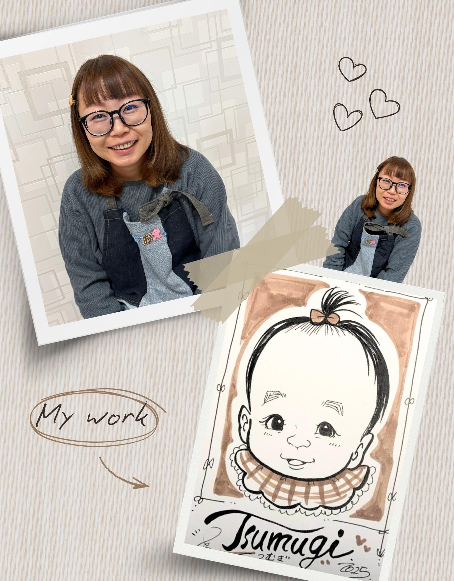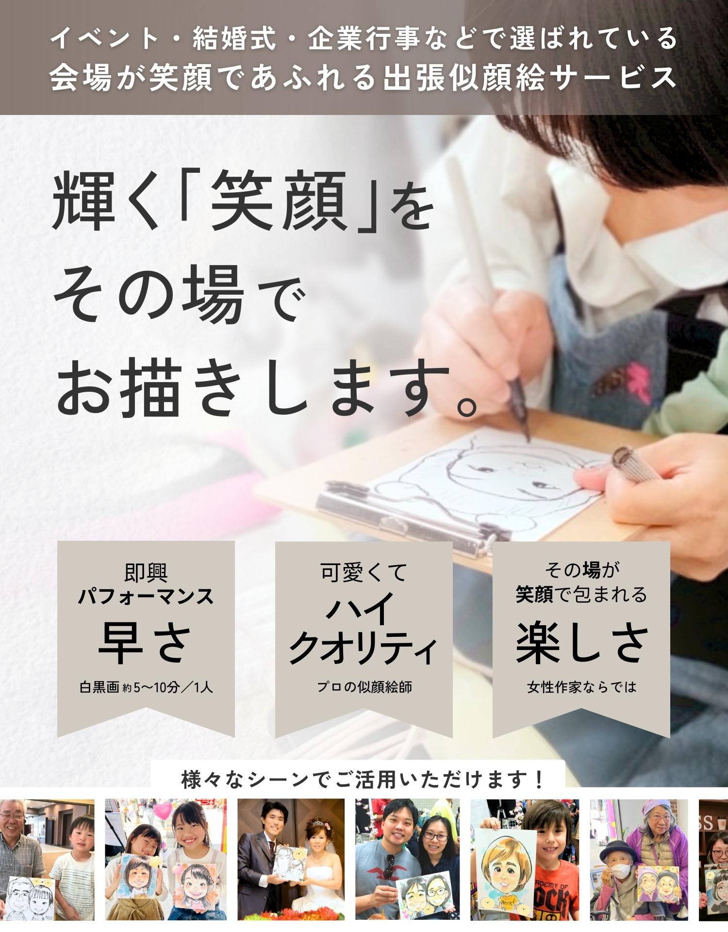 可愛くキャラクター風の似顔絵を描くのが得意です。モデルを主人公にする魔法の似顔絵。1枚の似顔絵で、笑顔を倍増させます。似顔絵のイベントパフォーマンスや、受注似顔絵。ペットちゃん似顔絵から、お祝い似顔絵まで幅広く承ります。